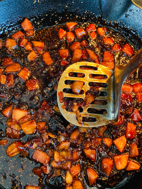 There are a few things that I feel add to the sweetness and flavor to the chutney from the iron skillet I cook it in and the sugar that is added which makes this different from other chutneys.