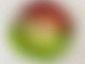 Step 6: Follow the curve of oranges, place mango squares in a curve.